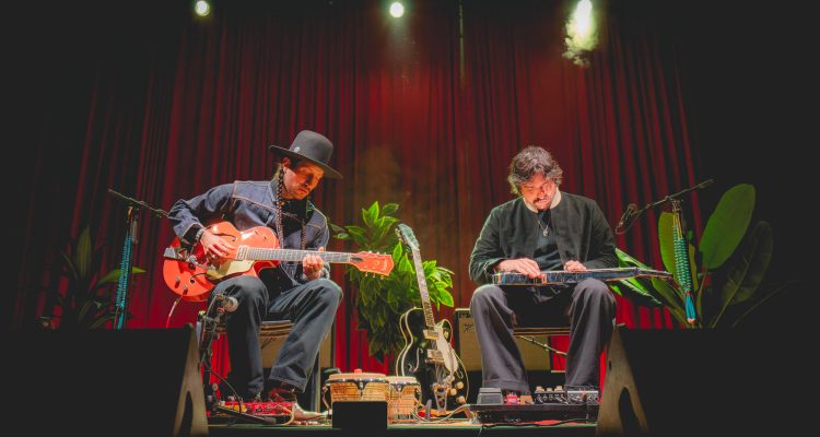 Durante este martes en el Coliseo se profundizó justamente esa identidad, con un show partiendo posterior a las 21:00 hrs y con una sala ya casi repleta, tanto en cancha, quienes en esta oportunidad disfrutarían sentados, como en tribuna, desde los primeros acordes de “Recuerdos”, la sala se llenó de un silencio reverente, casi ritual, mientras las guitarras marcaban un pulso hipnótico. Si bien a través de su música, los Hermanos Gutiérrez no necesitan palabras para narrar historias; constantemente están contando historias y agradeciendo el recibimiento brindado por el público nacional. Alejandro, con su Lap steel, construía imágenes casi cinematográficas (que fácilmente llevaban a la memoria esas viejas películas de western), mientras Estevan aportaba ese ritmo sutil pero firme, como si sostuviera el latido del horizonte que ambos imaginan y que era posible ver con tan solo cerrar los ojos y dejarse llevar.